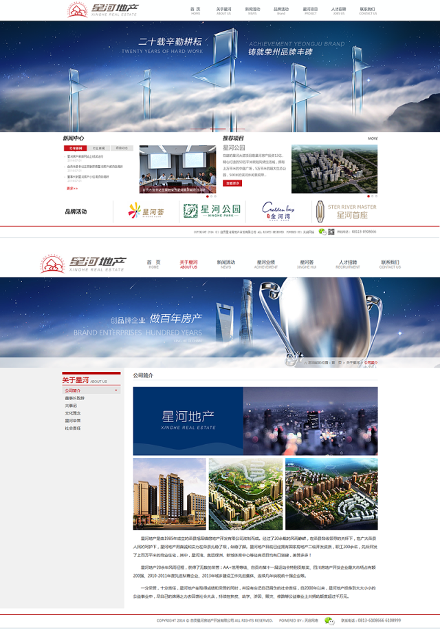星河地產(chǎn)是由1985年成立的榮縣旭陽鎮(zhèn)房地產(chǎn)開發(fā)有限公司改制而成。經(jīng)過了20余載的風(fēng)雨崢嶸,在榮縣各級領(lǐng)導(dǎo)的關(guān)懷下,在廣大榮縣人民的呵護(hù)下,星河地產(chǎn)用真誠和實(shí)力在榮縣扎穩(wěn)了根,站穩(wěn)了腳。星河地產(chǎn)目前已經(jīng)擁有國家房地產(chǎn)二級開發(fā)資質(zhì),職工200余名,先后開發(fā)了上百萬平米的商業(yè)住宅,其中,星河灣、奧運(yùn)綠洲、新城體育中心等經(jīng)典項(xiàng)目均有口皆碑,美譽(yù)多多!