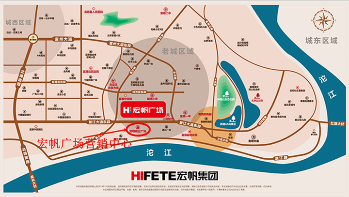 富順宏帆廣場位于四川省自貢市富順縣釜江大道東段(工商銀行旁),是富順首個真正的城市綜合體項目。地理位置優越,扼守富順老城商業核心區,緊鄰黃桷樹商圈,正對商業廣場,背靠千盛廣場商圈,富順縣中醫醫院、富順一中、四大國有銀行、政府機關企事業單位周邊環繞、近在咫尺。項目總占地約58畝,總建筑面積約24萬㎡,是宏帆集團斥巨資打造的集高端住宅、大型購物中心、餐飲娛樂、時尚風情商業街為一體的大型城市綜合體。項目整體規劃有全富順最大的一站式大型購物中心、6棟高層華宅,時尚風情商業街區,1棟約2500㎡幼兒園。