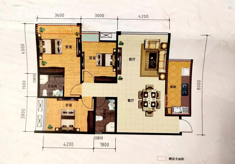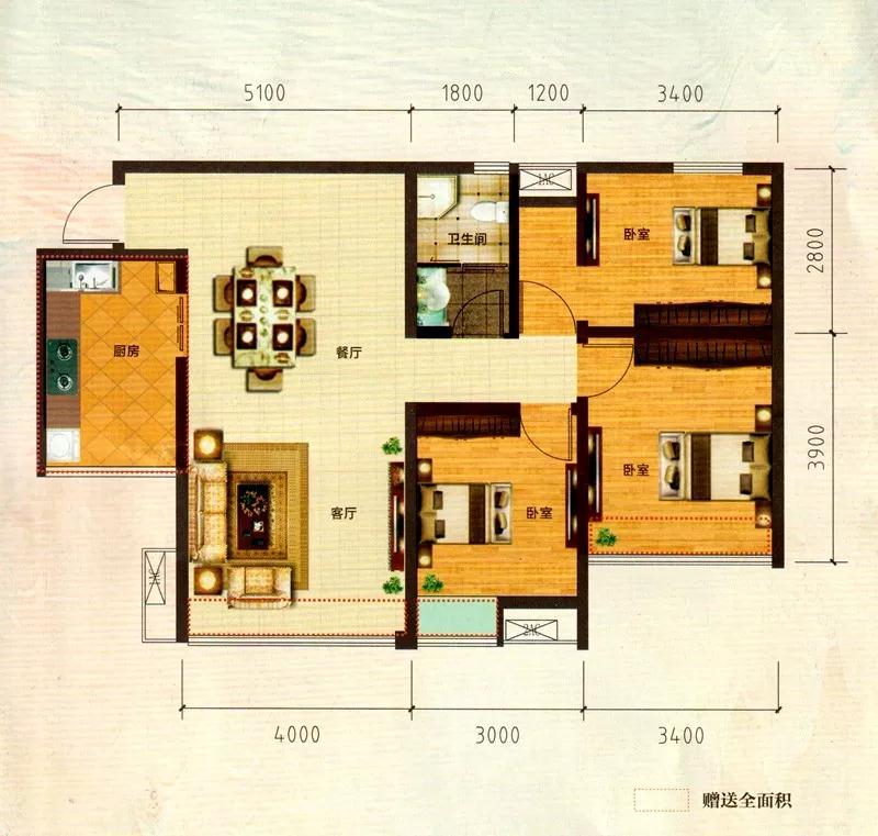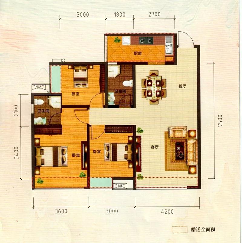 1、三室兩廳: