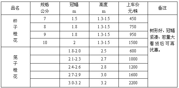 自貢市樹豐商貿(mào)有限責(zé)任公司桂花樹價格表