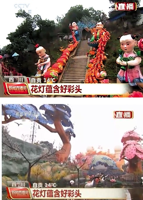 2月2日中午,中央電視臺新聞頻道6名記者駕駛兩臺直播車進入彩燈公園。經過一天的調試和準備,在2月3日16點和18點分別以《花燈蘊含好彩頭》和《群馬賀歲,寓意吉祥》為題,以現場直播的方式將自貢燈會的盛況展示給全國人民。