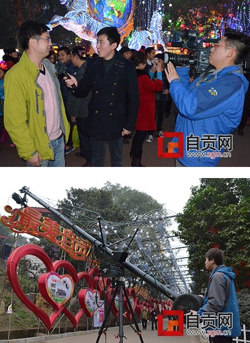 一切準備就緒,直播拉開帷幕。“中國自古就有賞花燈的習俗,而四川自貢則被稱為南國燈城。今年自貢燈會共有119組大中型燈組,不少都使用了新光源,力求更壯觀更節能。”2月3日16點,中央電視臺新聞頻道上出現了精美的自貢燈會畫面,央視記者蔣林以現場解說的形式,將自貢燈會悠久的歷史,精美的燈組以及如今使用的新能源光源等向全國的觀眾朋友進行介紹。