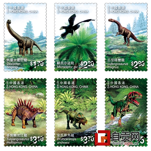 昨日,記者從自貢市郵政局集郵公司獲悉,本月20日,香港郵政將發行《中國恐龍》郵票一套,這套以恐龍為主題的郵票選取了產自中國境內的6種最具代表性的恐龍,包括炳靈大夏巨龍、顧氏小盜龍、巨型祿豐龍、多背棘沱江龍、安氏原角龍及上游永川龍。其中,多背棘沱江龍最早于1974年發掘于我市自流井區伍家壩。
