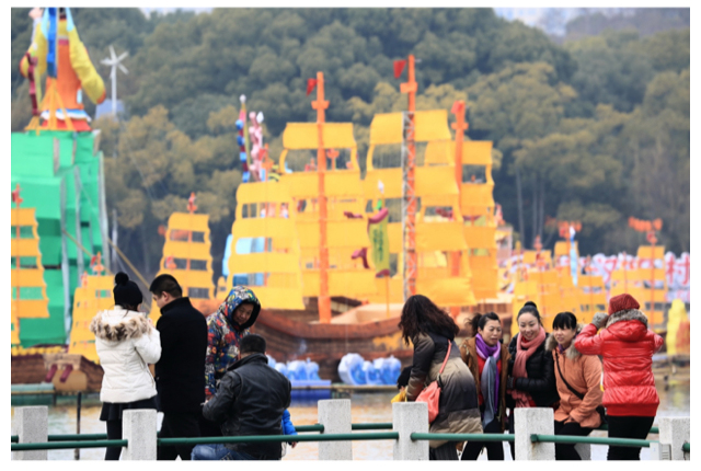 此次燈會邀請的是連續7年為“央視秋晚布景”的團隊——即海天彩燈制作團隊,此舉被當地媒體戲稱將打造“武漢夢工廠”,燈會將于元宵節當天開幕,此次燈會規模檔次都堪稱完美,由五大板塊、近百組水陸燈組組成,將持續至4月20日,為期66天。