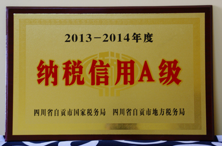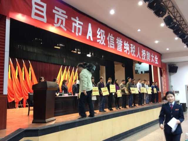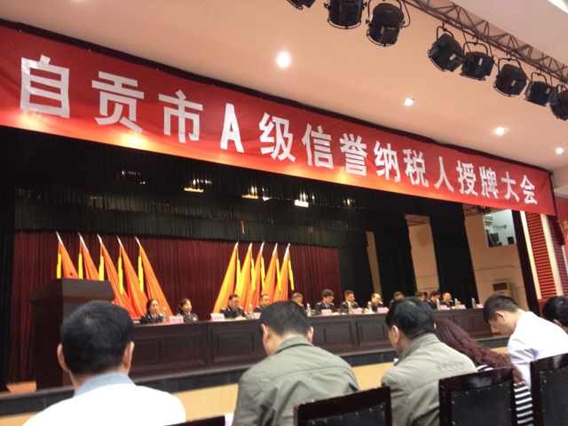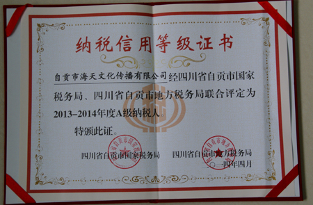 2014.4.10,海天公司參加了自貢市A級信譽納稅人授牌大會。