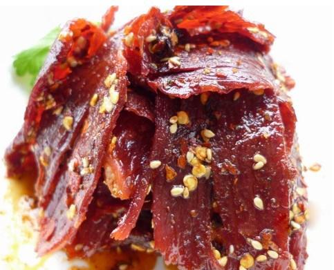 火鞭子牛肉起源于清代乾隆年代,清末民初已成為四川名特產。與張飛牛肉和太和牛肉一起稱為“川中牛肉三杰”。以質優味美、片薄如紙、酥香綿長而聞名遐爾。火鞭子是舊時四川自貢地區的照明火把,這里用“燈”的明亮,來表示牛肉的薄而透亮。現在很多商品寫作“火邊子”,屬誤字。