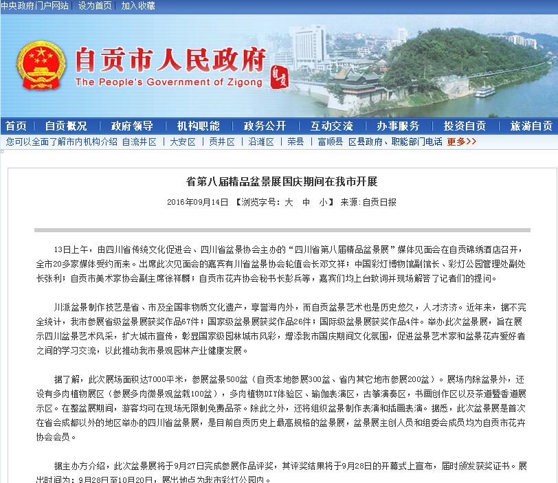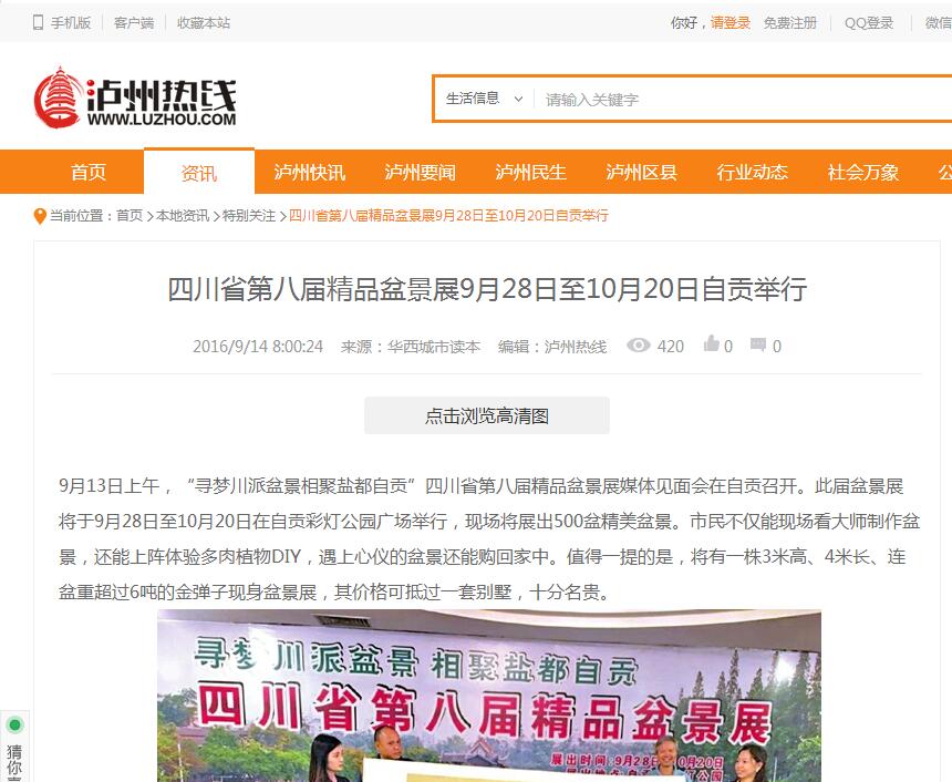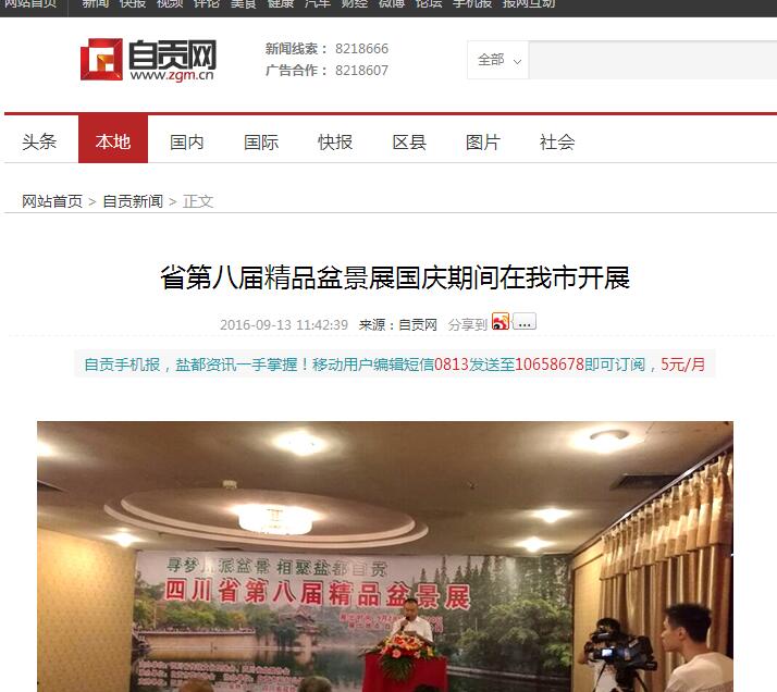 四川省第八屆盆景展媒體見面會9月13日上午10點在雄飛錦繡花園酒店多功能廳隆重召開。四川省盆景協會輪值會長鄧文祥,自貢市花卉協會會長王室康,自貢市花卉協會秘書長彭兵,中國彩燈博物館副館長、彩燈公園管理處副處長張利,自貢市美術家協會副主席徐祥麟,華西都市報自貢記者站站長羅暄等嘉賓和自貢日報、自貢晚報、自貢全媒體中心、自貢電視臺、自貢電臺、華西都市報、富順電視臺、富順在線、榮縣全媒體中心、自貢在線、釜溪印象、言成傳媒、自貢搜房網、自貢房產網、嗨自貢、搜城記、愛尚自貢、自貢吃喝玩樂網、自貢看點網、最自貢、自貢頭條等媒體出席了媒體見面會。