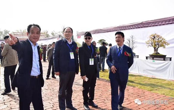 ▲ 嘉賓現(xiàn)場參觀盆景藝術(shù)作品,從左往右依次為:中國盆景藝術(shù)家協(xié)會第六屆理事會副會長、滁州市老科協(xié)會長徐淦,滁州市委常委、副市長趙鯤,中國盆景藝術(shù)家協(xié)會第六屆理事會秘書長兼執(zhí)行會長蘇放,中國盆景藝術(shù)家協(xié)會常務(wù)副會長、安徽省盆景藝術(shù)協(xié)會會長樊順利