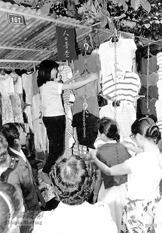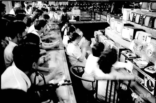八十年代初電視進入縣城,富順五交化公司電視專柜前,售貨員與群眾觀看電視節(jié)目(鄧佑云 攝)
