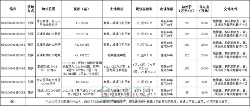 自貢市多宗國有建設用地使用權拍賣出讓公告(有圖有真相)
