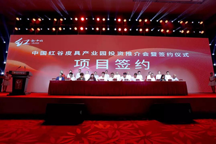 2017年9月30日,“紅谷尚品智能產業基地”項目正式簽約成功,標志著紅谷集團總投資20億元的中國西部首個皮具產業園項目正式進駐富順。項目投產后年銷售額30億元,實現利稅3億元,提供就業崗位1萬人以上,將為紅谷的全球化發展提供有力的產品保障。