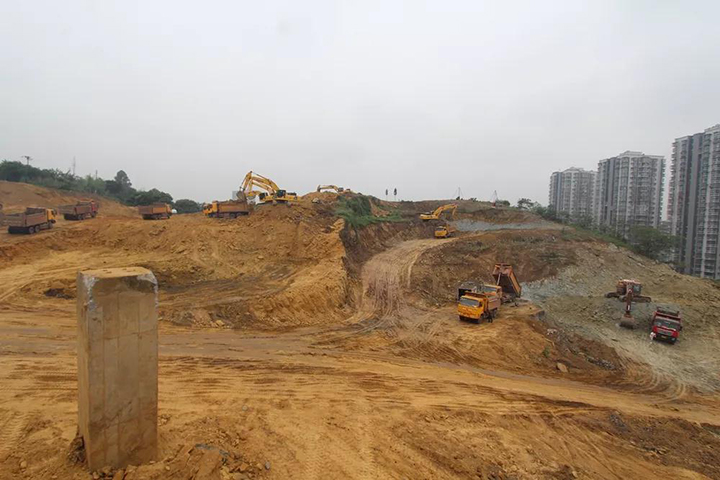 5月14日,自貢房產網小編在南湖西區軍分區旁萬達廣場選址地看到,施工場面如火如荼,挖掘機、重型貨車往來不停,現場緊張有序, 備受矚目的萬達廣場建設大幕已經拉開。