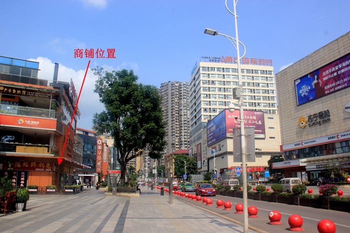 處于華商火爆餐飲街區內,臨近電影院、購物中心、出門即交通主要干道,連接自貢北區以及南區的主要交通干線。店鋪門口每天都是人氣的聚居地,可以吸附大量客群。所有活動基本在店面門口執行,即是華商火爆餐飲街區的主要入口點。