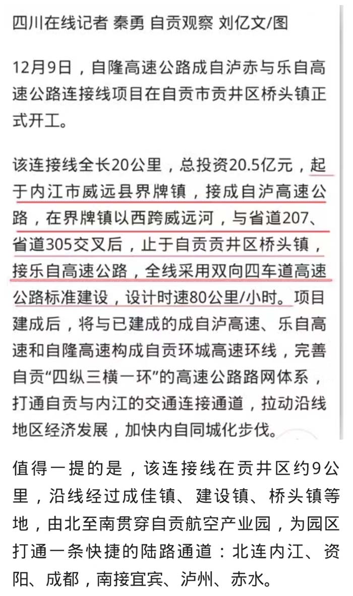 就在9日自隆高速公路成自瀘赤與樂自高速公路連接線項目在自貢市貢井區橋頭鎮正式開工