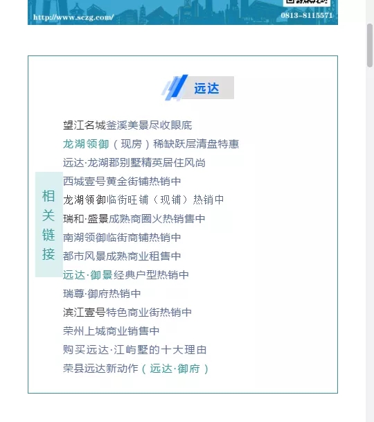 也可以可以在首頁樓市查詢菜單中點擊房企分類,找到遠達查詢遠達·望江名城樓盤信息。