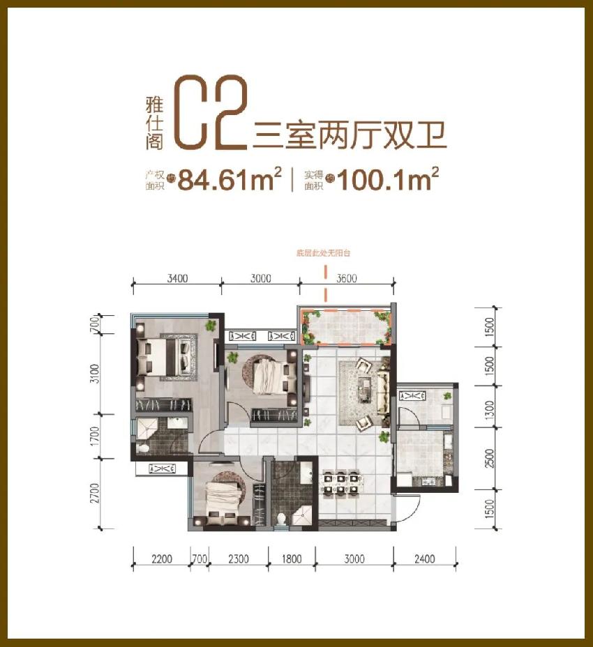建面約84.61㎡三室兩廳雙衛