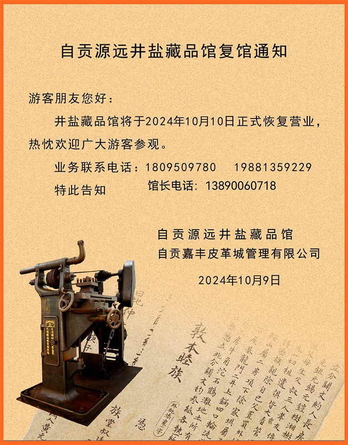 近年來,楊源一直在為成立個人藏品館而奔走。“ 名字就叫‘自貢源遠井鹽藏品館’。” 楊源攤開一張詳細的規劃圖,表示成立藏品館的想法建立在井鹽生產的歷史長河中,為這座城市留下了眾多的鹽業歷史遺跡,同時也不愿意自己數十年收集的藏品“藏在深閨無人知”。今天,這個愿望終于實現了。自貢源遠井鹽藏品館——川南文旅新地標在川南皮革城落成,并于2024年1月1日正式開館。
